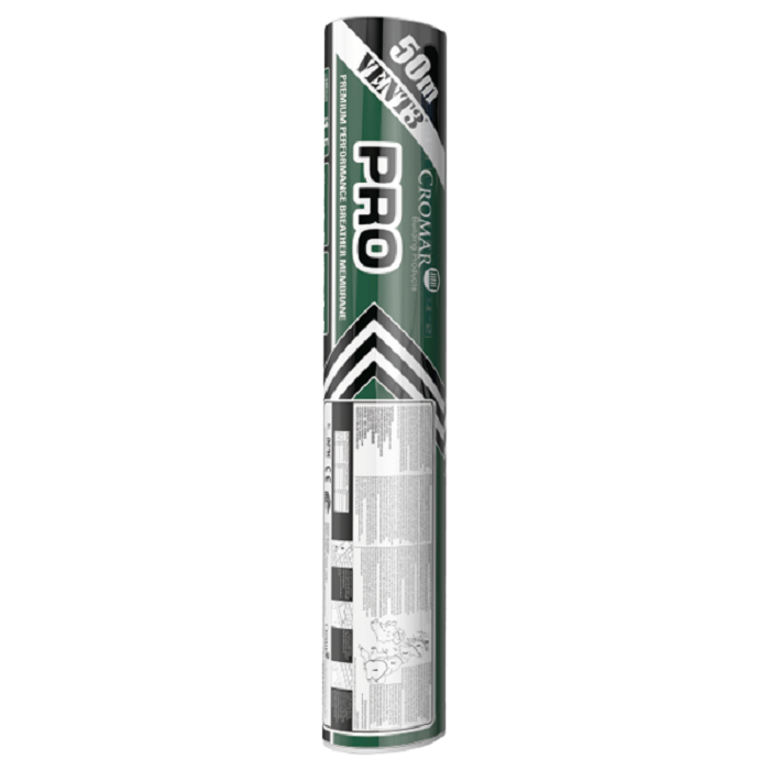 Cromar Vent3 PRO Breathable Membrane is a triple layer fabric, high performance breather membrane, made from high tensile spun bonded polypropylene layers, around a micro‐porous polypropylene film.